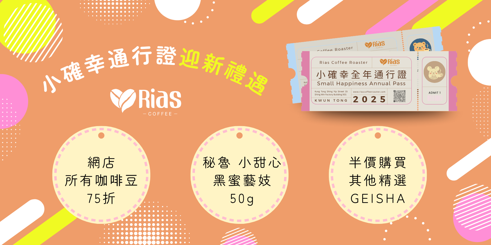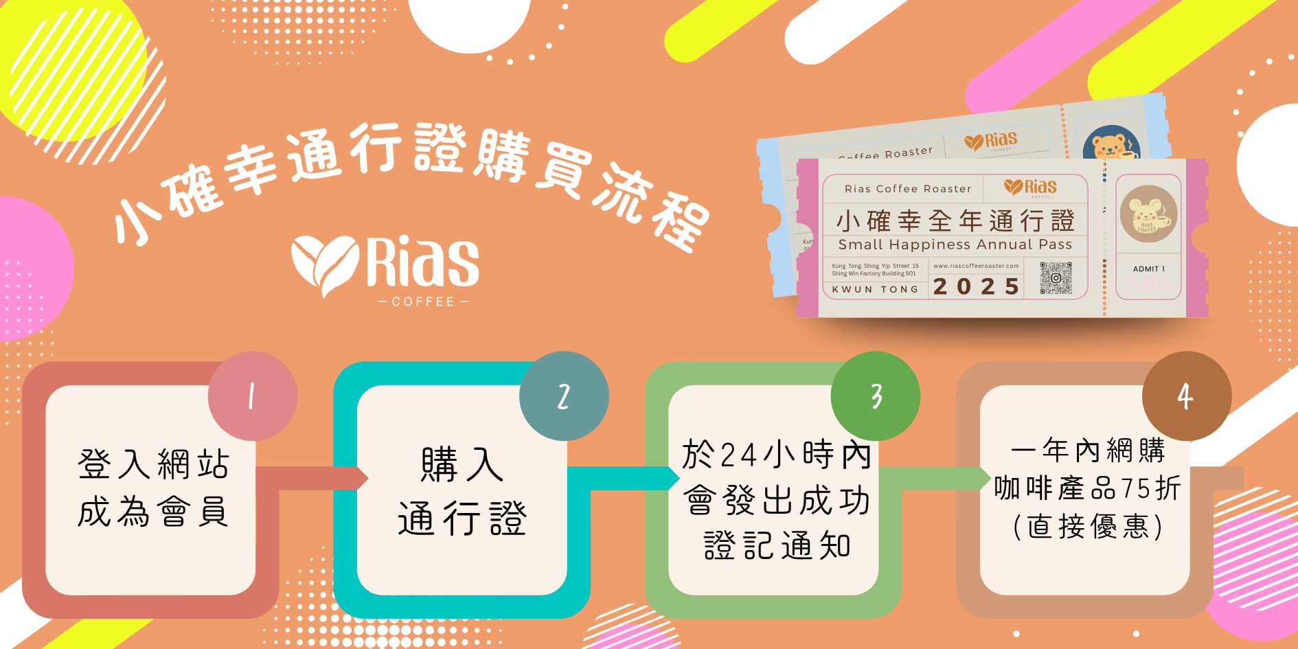 購買【咖啡小確幸通行證】後,您可以享受到為期一年的禮遇:
